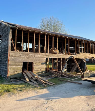 Now vine-encased and often filled with remnants of hay and the occasional snake skin, these structures once facilitated a way of life for generations of families. While the buildings themselves may no longer serve a useful purpose, many of the boards and beams that compose these structures still exhibit redeeming qualities of exceptional durability and age-enhanced character – worthy of a second chance.